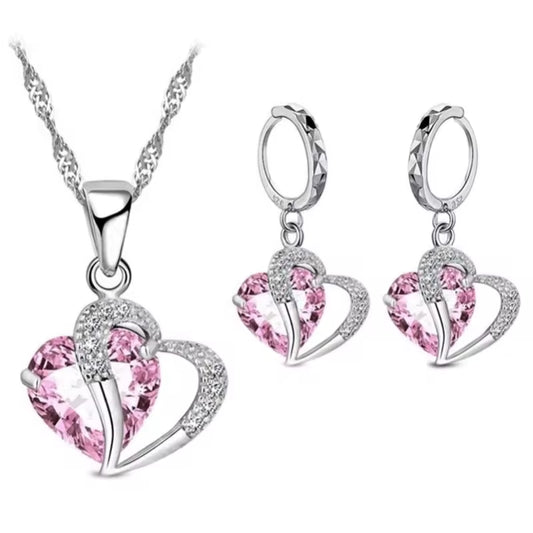 Women's Sterling Silver Luxury Cubic Zirconia Necklace Pendant Earrings Sets