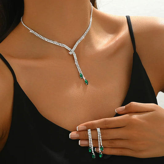 Women's Luxury Rhinestone Ring Necklace Earrings Bracelet Jewellery Sets