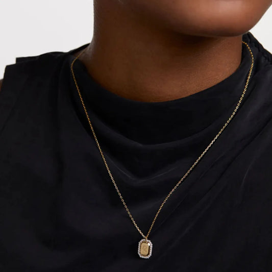 Zodiac Inlaid White Zircon Gold Square Pendant Necklace