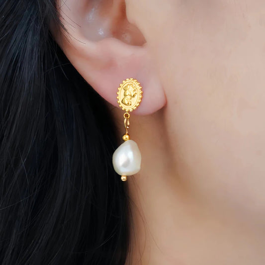 14K Gold Inlaid Zirconium Four Petal Large Flower Earrings