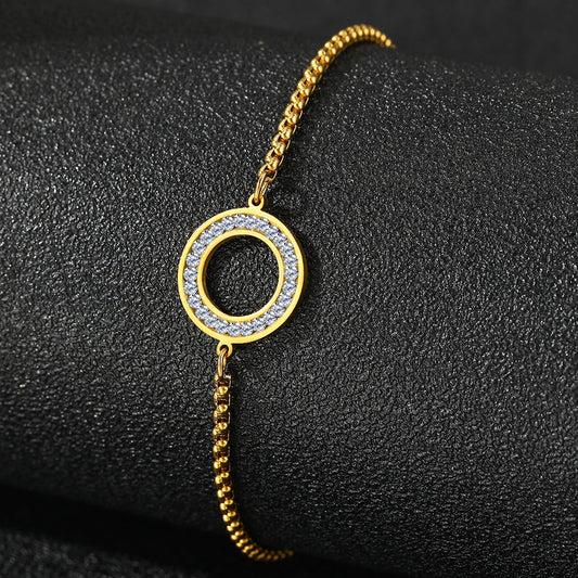 Stainless Steel Diamond Circle Charm Bracelet for Women