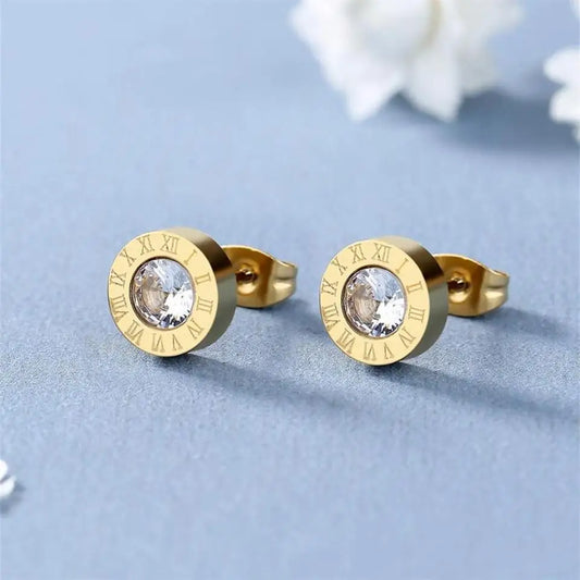 Roman Numerals Detail Rhinestone Stud Earrings for Women