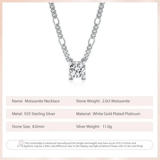 2 Carat Moissanite Diamond Pendant Necklace for Women