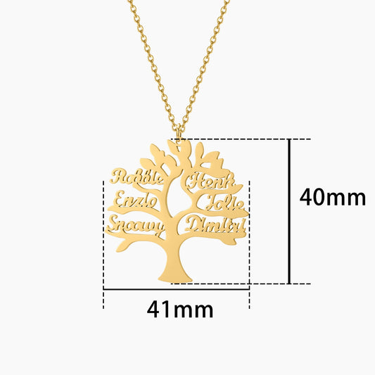 Custom Personalized Name Tree of Life Pendant Necklace with 1-6 Names