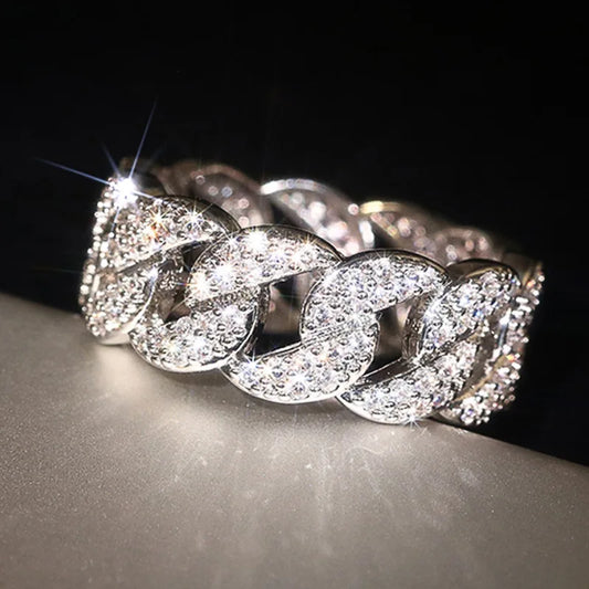 Silver 18K White Gold-Plated Zircon Wedding Ring for Women