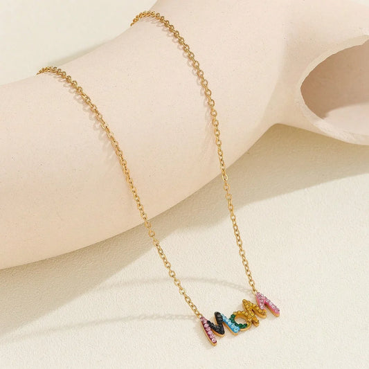 "MOM" Multi-Colored Zircon Stone Pendant Necklace for Women