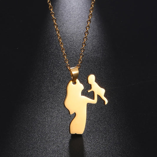 2Pcs Mom Holding Baby Pendant Necklaces