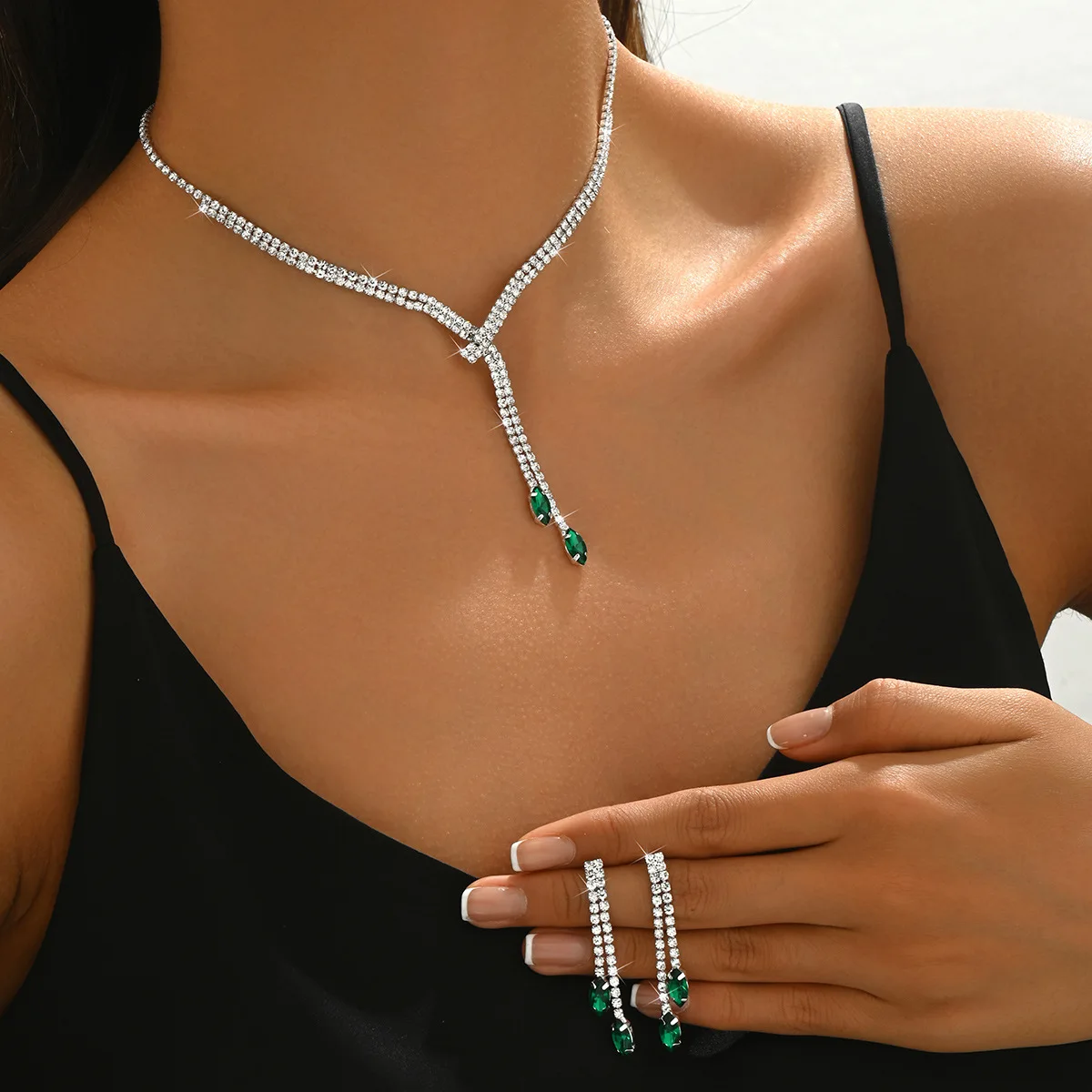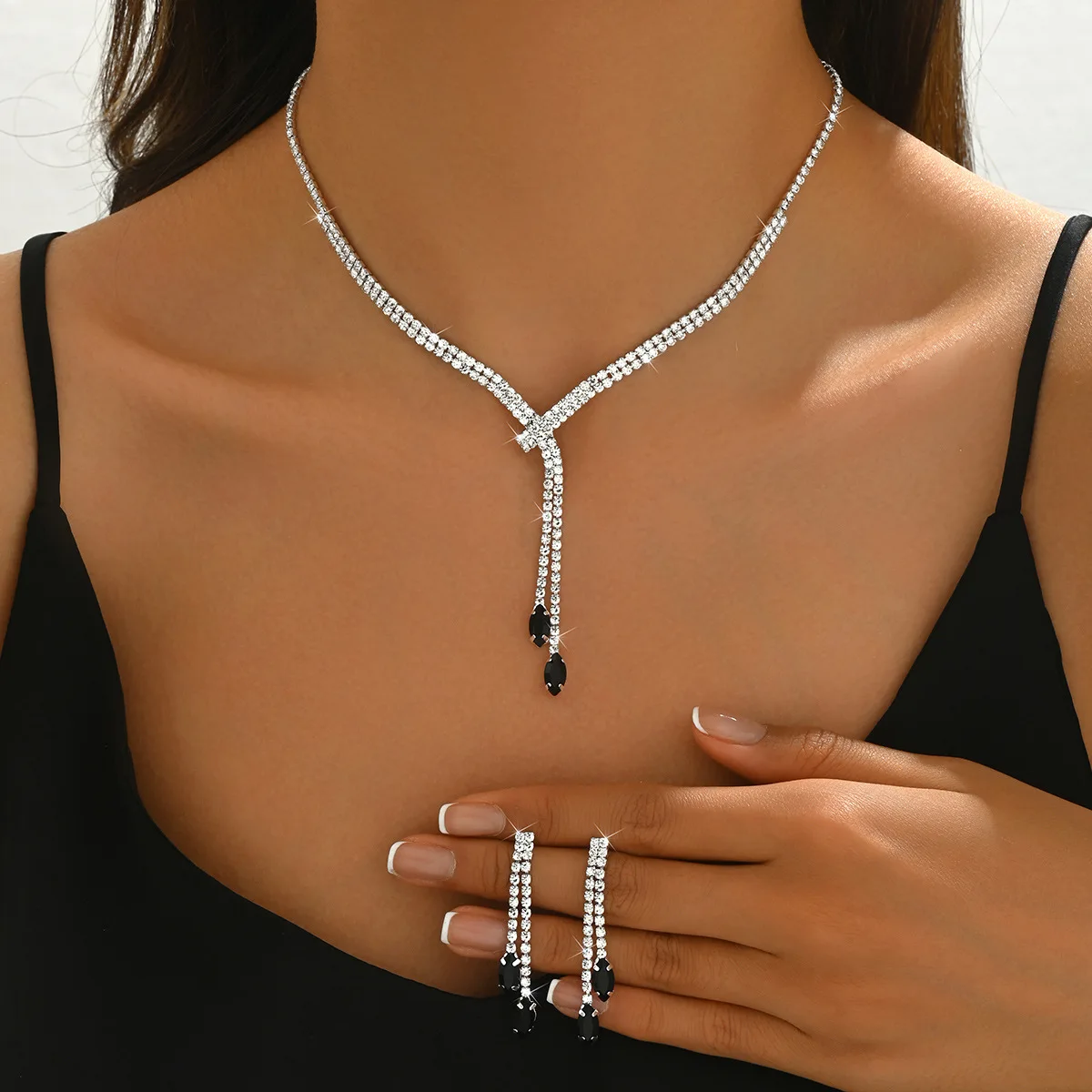 Zirconia Long Necklace and Earrings Sets for Women