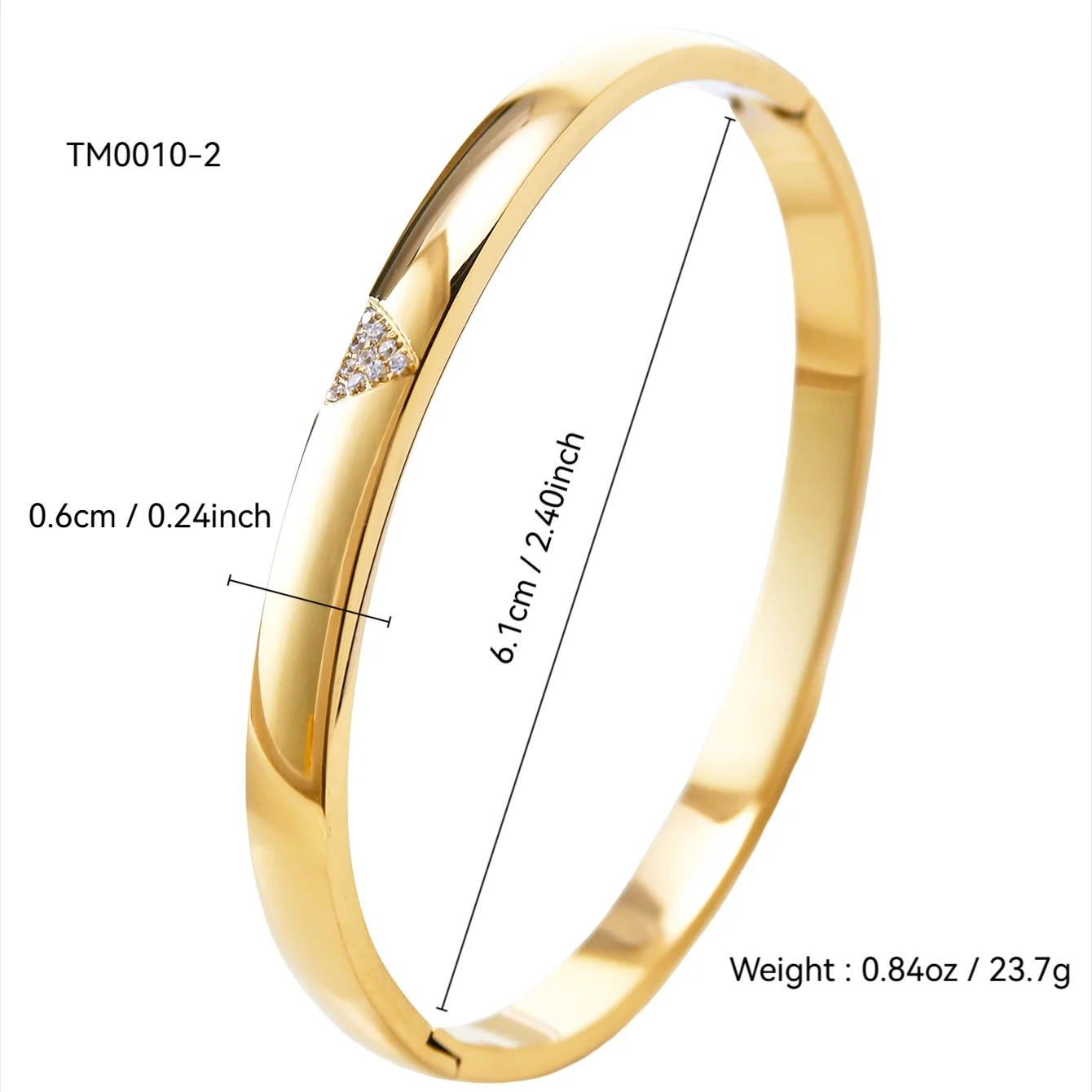 Gold Plated Stainless Steel Diamond-Encrusted Triangle, Honeycomb & Heart Bangle Bracelets for Women