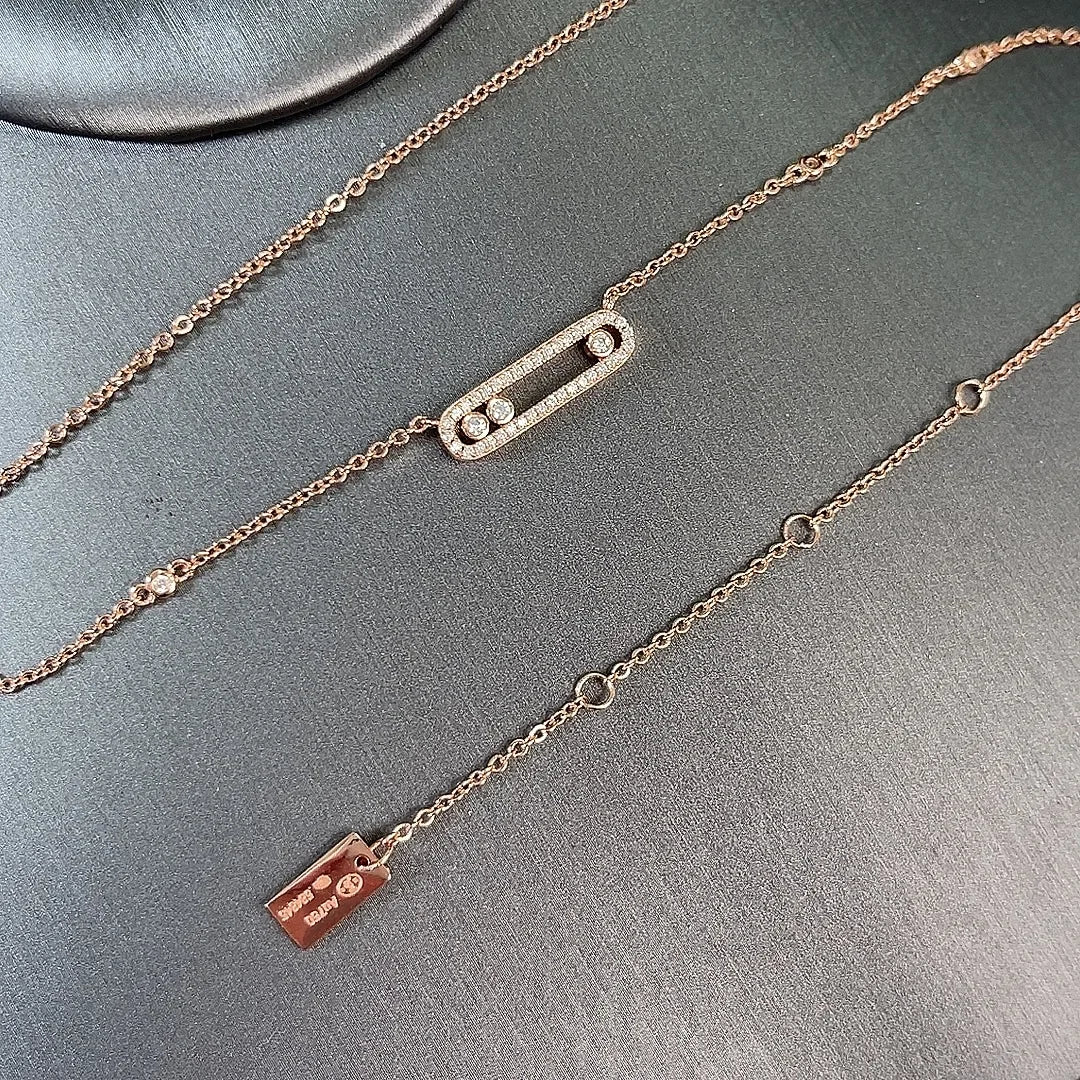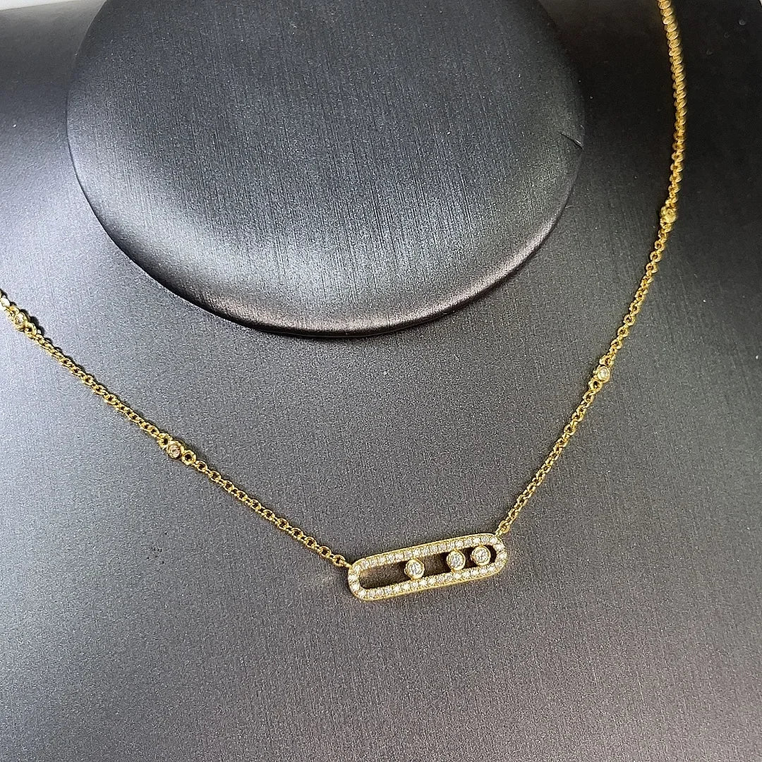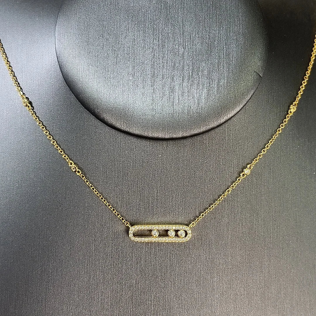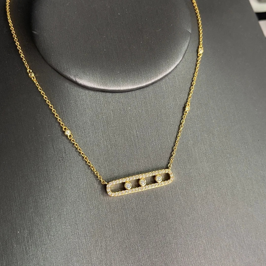 Silver or Gold Three Zircon Balls Moving in Oval Pendant Necklaces for Women