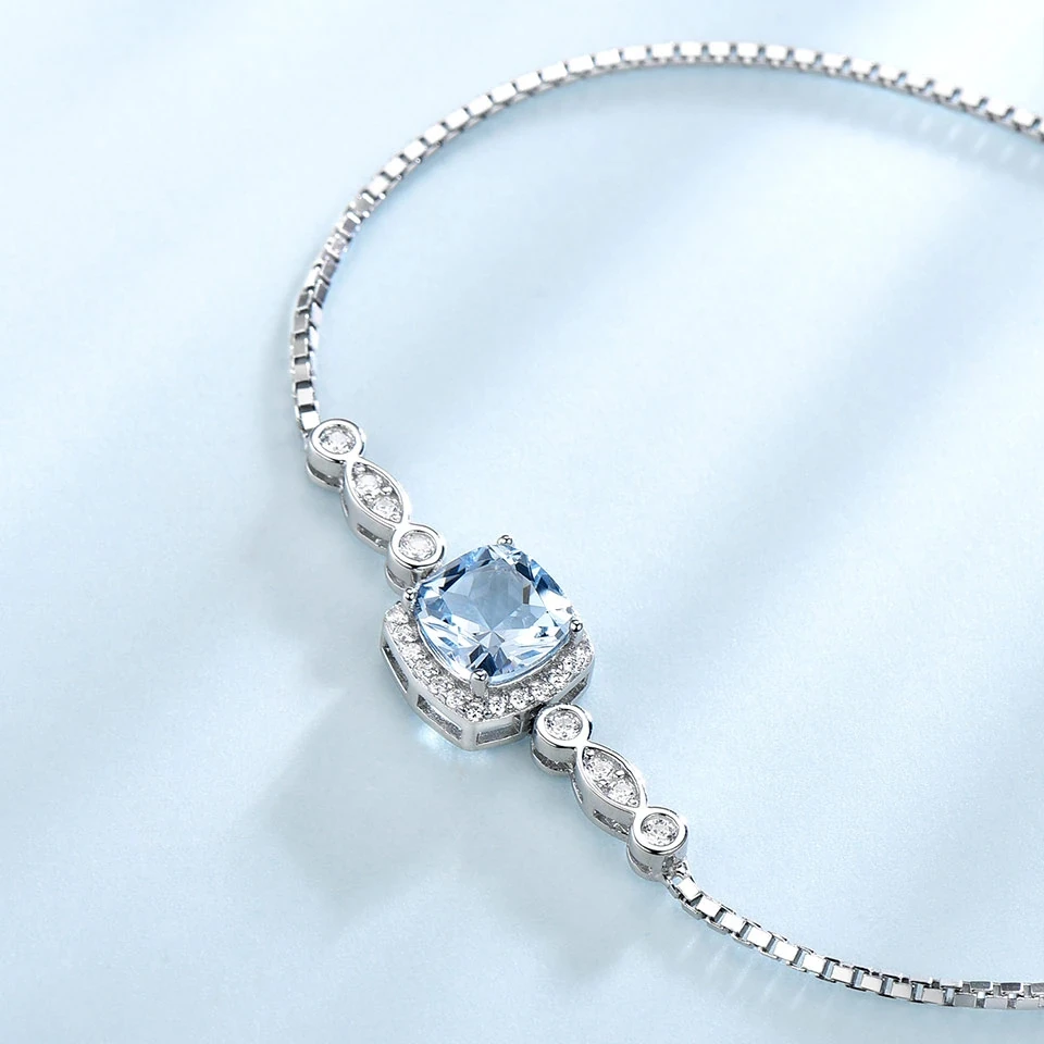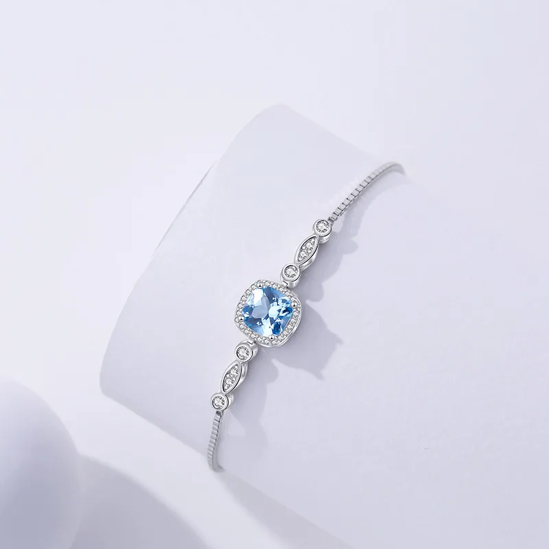 Silver Bracelet with White and Blue Stones for Women